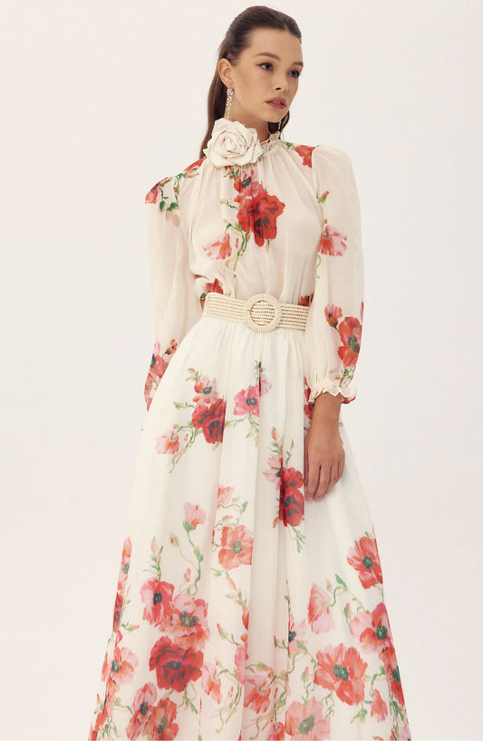 Ariadne 3D Çiçekli Sırtı Açık Uzun Elbise