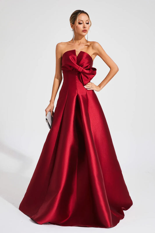 Agnes Kırmızı Fiyonk Düşük Omuz Maxi Elbise