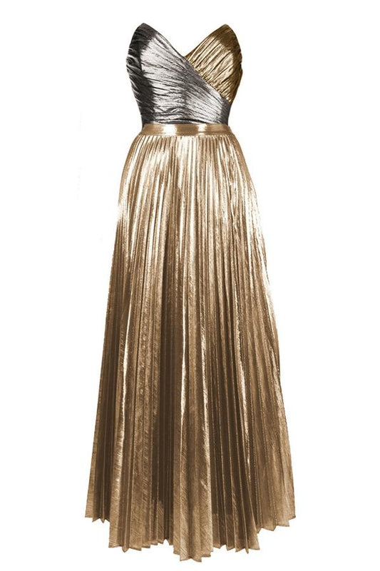 Ailiyah Metalik V Yaka Yırtmaçlı Midi Elbise