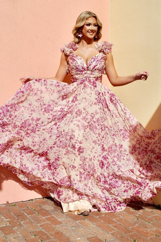 Alanna Çiçek Baskılı Uzun Slip Elbise