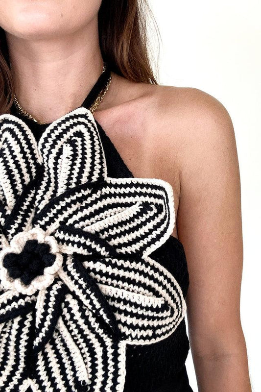 Alda Çiçek Tığ İşi Boyundan Bağlı Mini Elbise