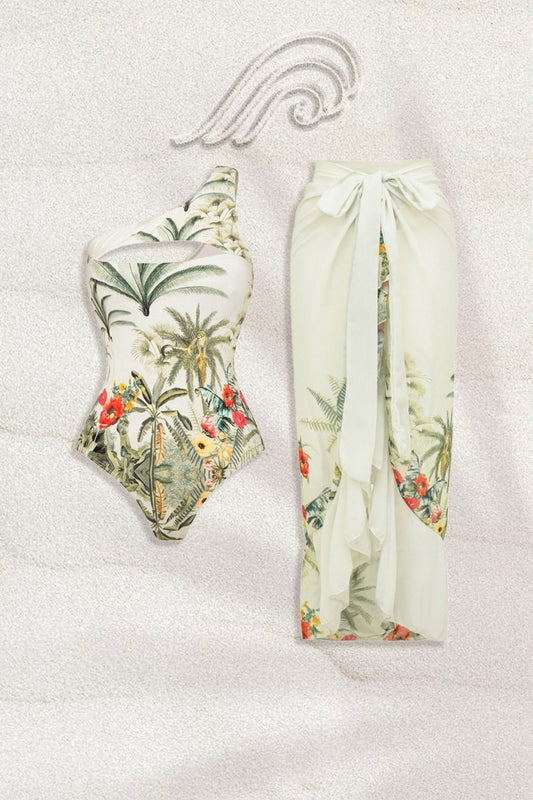 Alana Baskılı Tek Omuz İkili Yüzme Seti