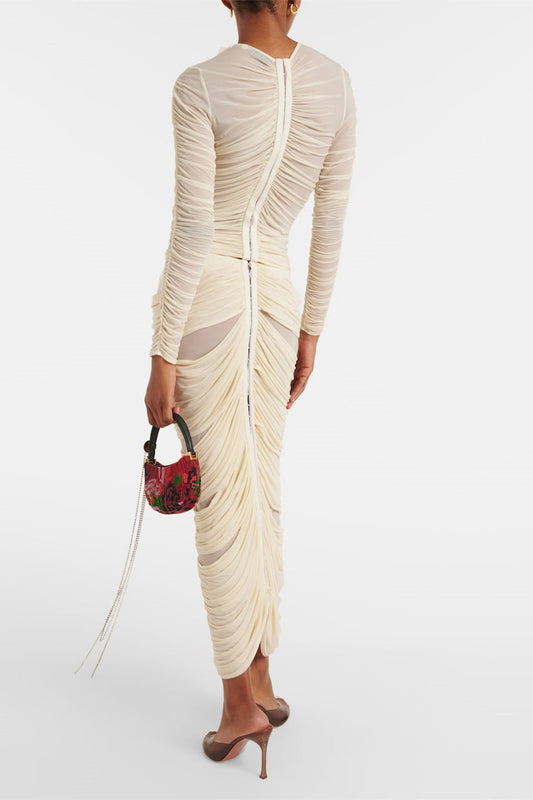 Dorse Yuvarlak Yaka Çift Taraflı File Elbise