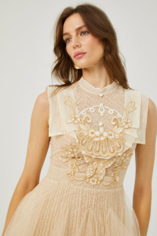 Elizabeth Kelebek İşlemeli Tül Mini Elbise