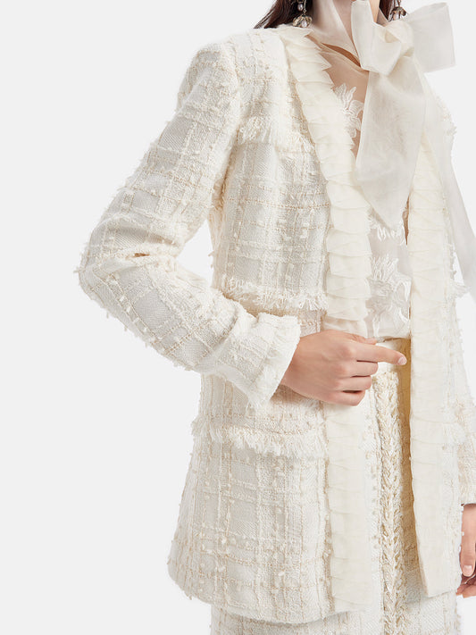 Fransız Yün Karışımlı Boncuklu Ekose Ceket