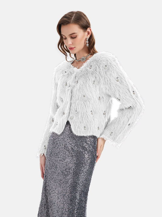 Iliana Gümüş İnci İşlemeli Payet Mini Elbise