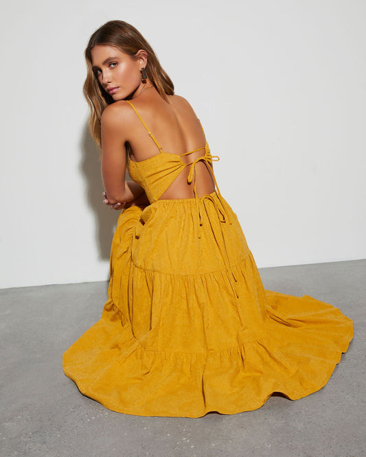 Kadife Çiçeği Sırtı Bağlamalı Midi Elbise