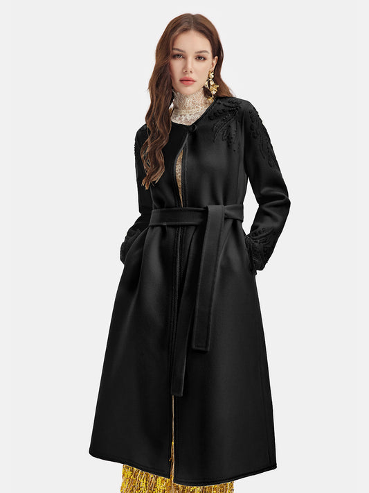 Kaşmir Halat Boncuklu Nakışlı Çift Yüz Kaban