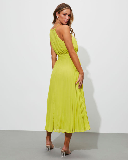 Liamara Pileli Boyundan Bağlamalı Midi Elbise
