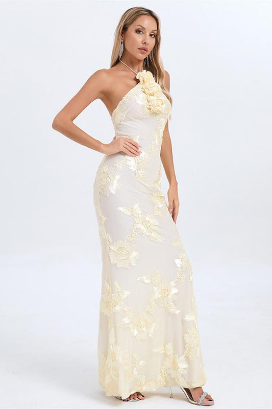 Lorraine Boyundan Bağlamalı Çiçekli Uzun Elbise