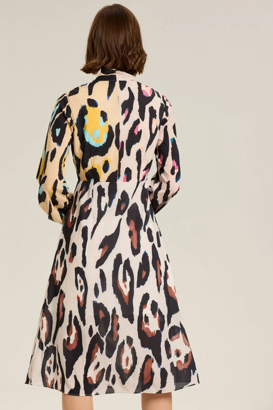 Monica Leopar Desenli Blok Renk Midi Elbise
