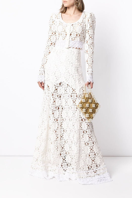 Monroe Beyaz İçi Boş Uzun Kollu Maxi Elbise