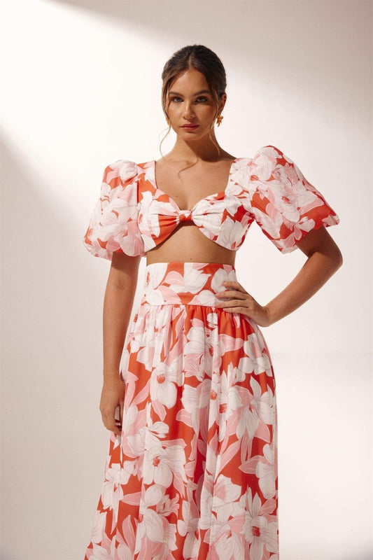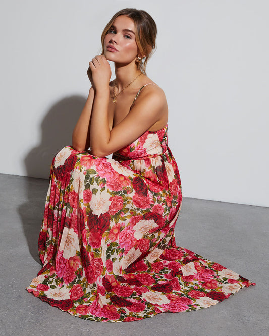 Natalie Kırmızı Çiçekli Dantelli Boyundan Bağlamalı Maxi Elbise