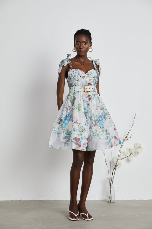 Ophelia Çiçek Desenli Kuşaklı Mini Elbise