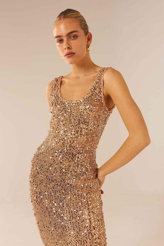 Odelia Sırtı Açık Payetler Midi Elbise