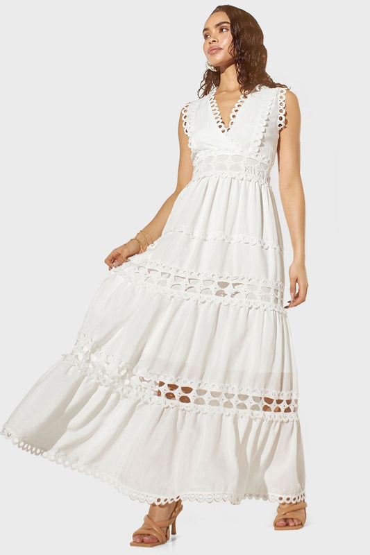 Paddy White Hollow Maxi Elbise
