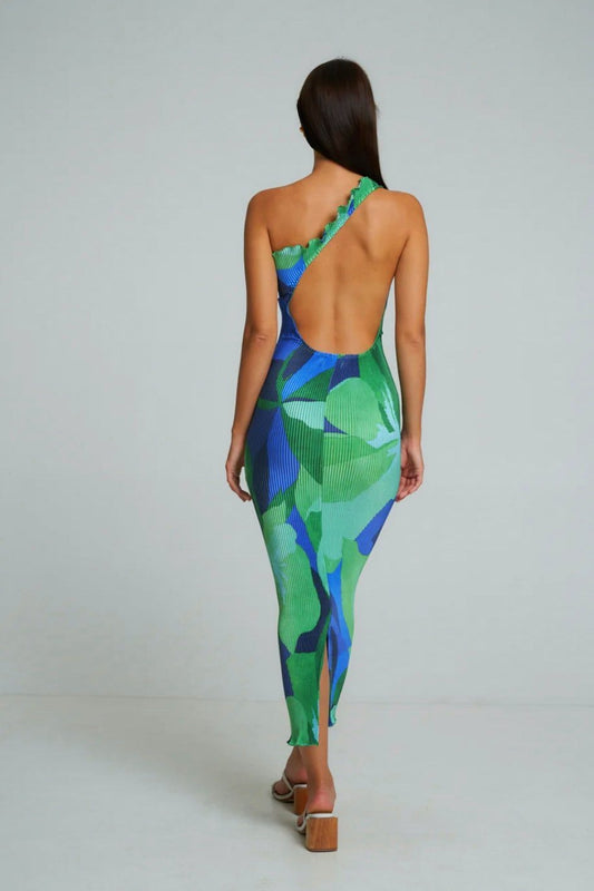 Omuzları Açık Baskılı Body Maxi Elbise