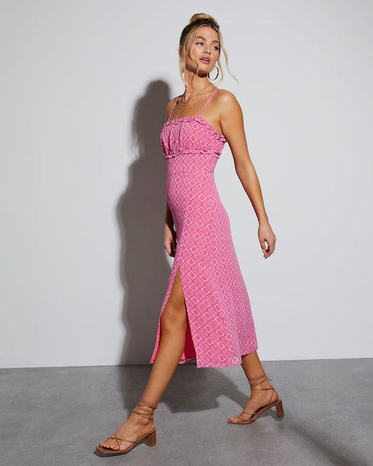 Shonna Baskılı Fırfırlı Kuşaklı Midi Elbise