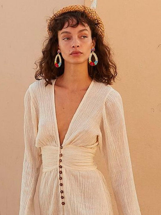 Setlla Metal İşlemeli V Yaka Midi Elbise