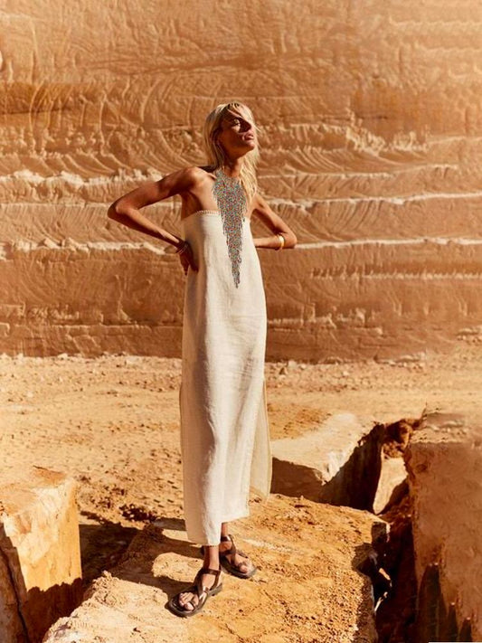 Sibyl Baskılı Düğümlü Askılı Uzun Elbise