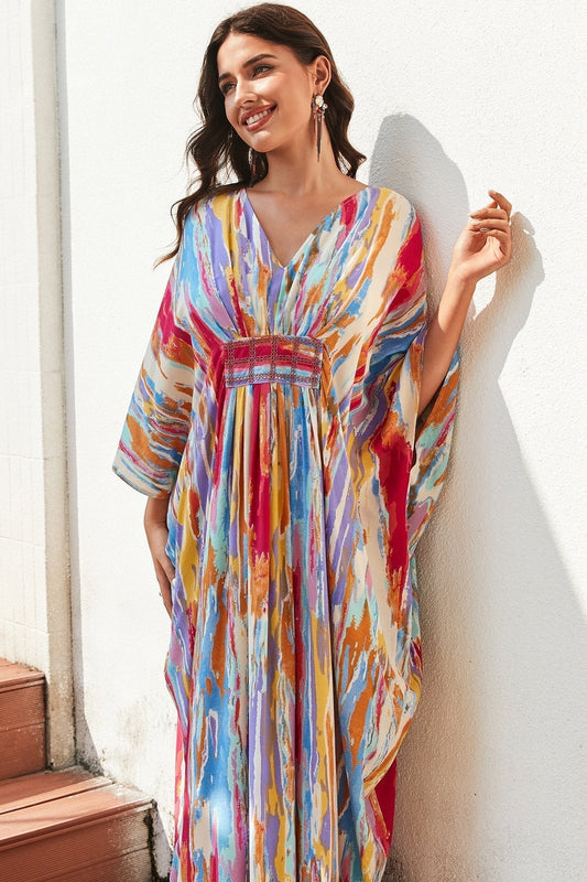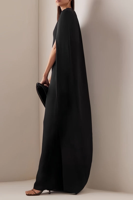 Shona Büzgülü Pelerinli Krep Maxi Elbise