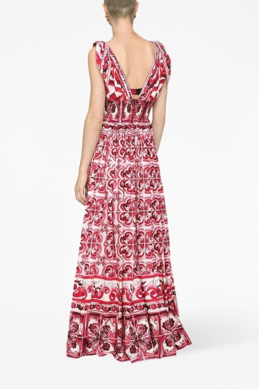 Sheila Baskılı Yüksek Yırtmaçlı Uzun Elbise