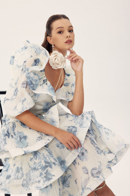 Sylvia Çiçekli Uzun Kollu Uzun Elbise