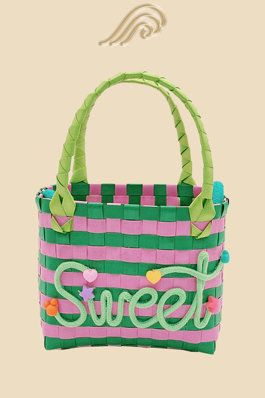 Tatlı Kontrast Renk Örgü Tote Çanta