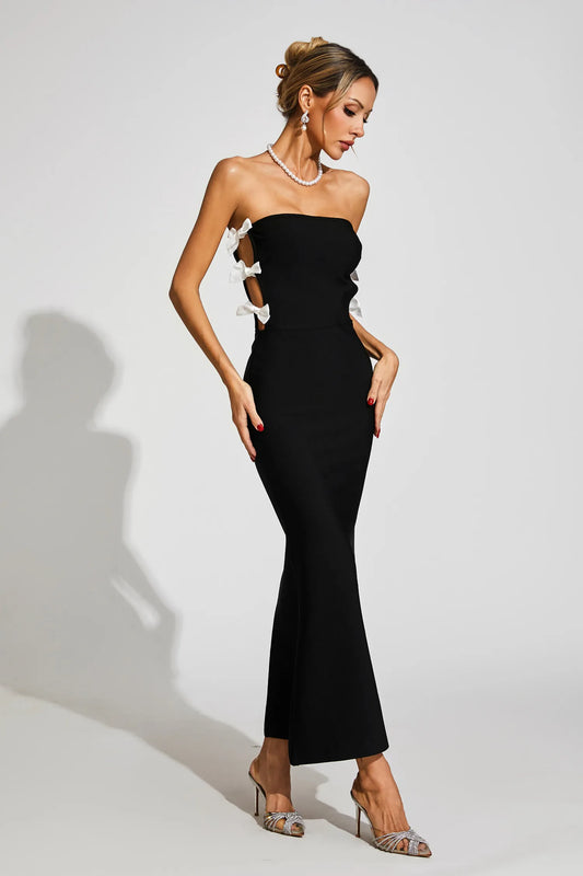 Valeska Siyah Papyonlu Bandaj Maxi Elbise