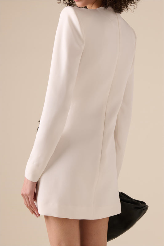 V Yaka Pileli Blazer Mini Elbise