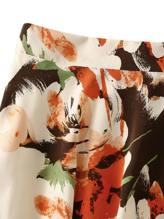 Una Çiçekli A Kesim Midi Etek