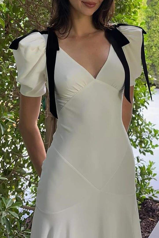 Valentina Puf Kol Fiyonklu Maxi Elbise
