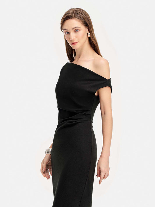 Mizaç Dar Kesim Tek Omuzlu Bölünmüş Saten Elbise