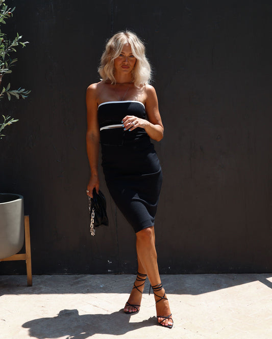Modern Day Jackie Nervürlü Kesim Straplez Midi Elbise