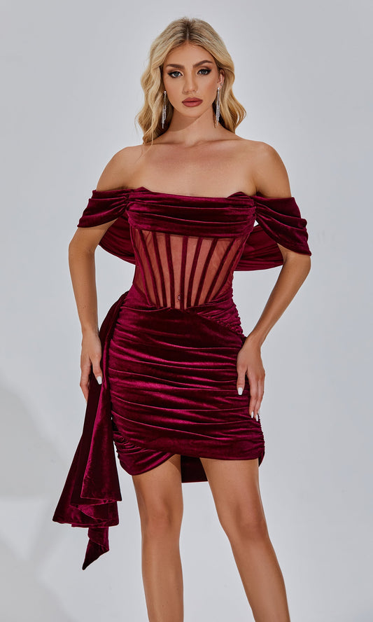 Agnes Kırmızı Fiyonk Düşük Omuz Maxi Elbise