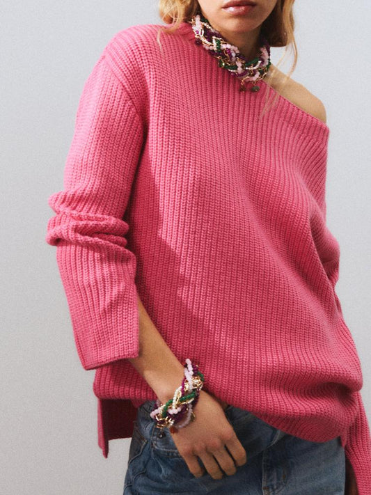 Tatlı Kontrast Renk Örgü Tote Çanta