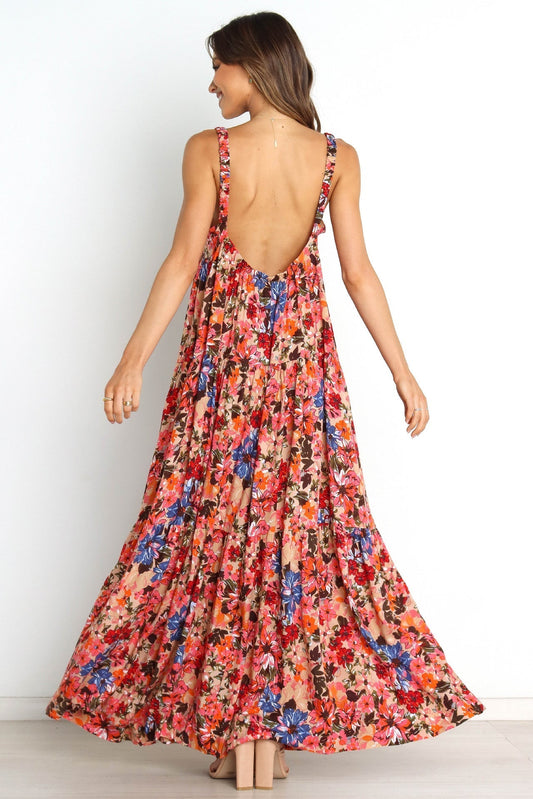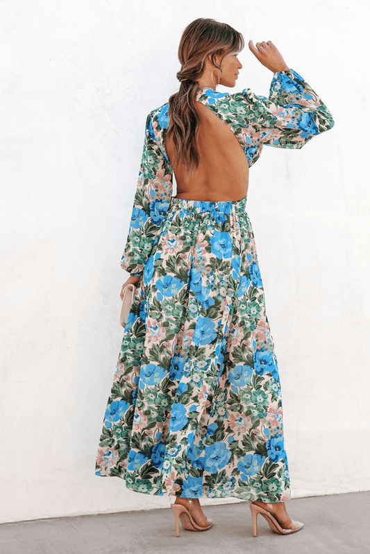Sue Çiçek Baskılı Boyundan Bağlı Maxi Sundress