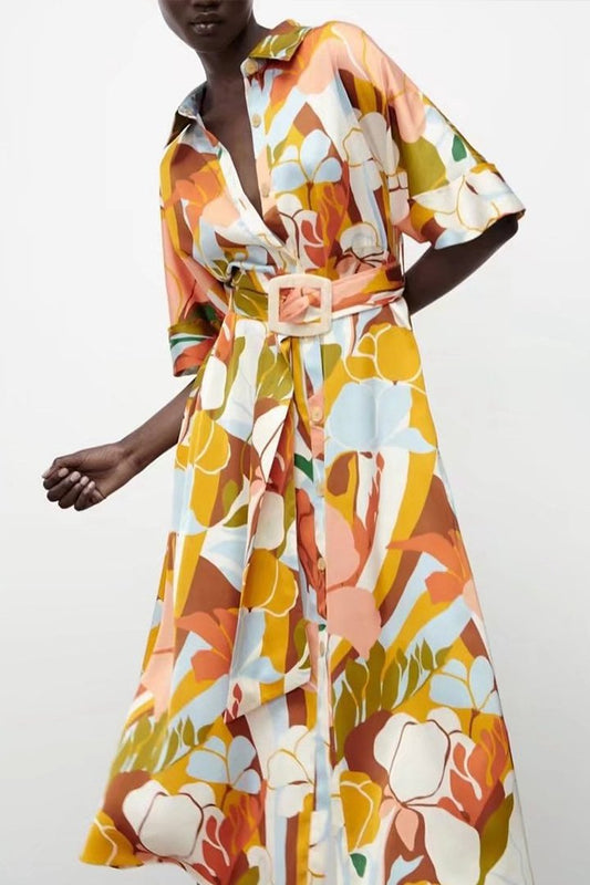 Ina Splice Baskılı Düğmeli Uzun Elbise Elbise