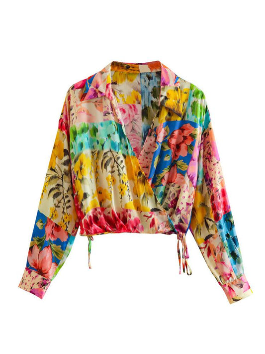 Tina Baskılı Boyundan Bağlamalı Katlı Maxi Elbise