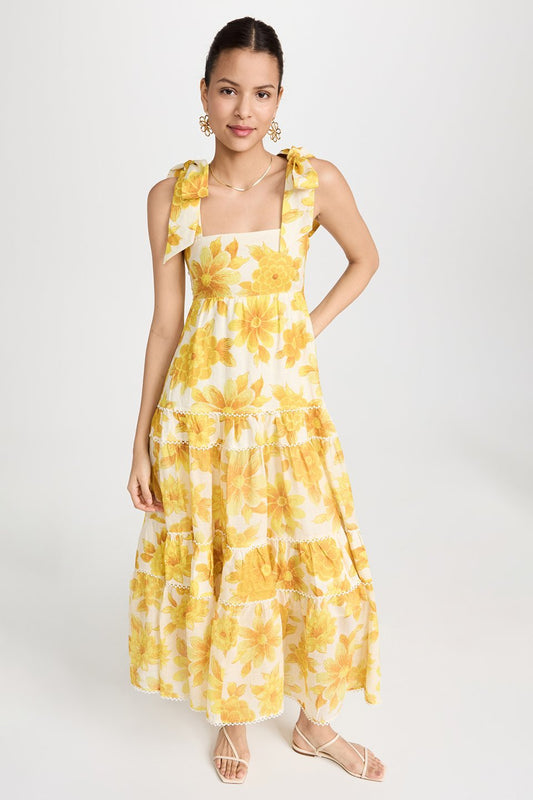 Rhoda Baskılı Kuşaklı Katlı Maxi Elbise