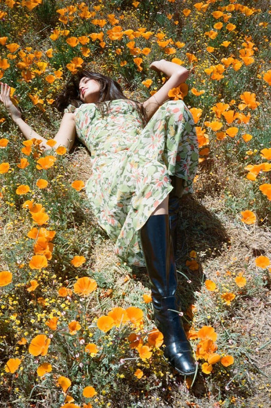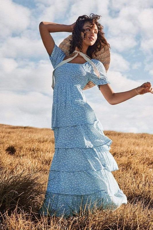 Aditi Splice Baskılı Bol Kesim Midi Köylü Elbisesi