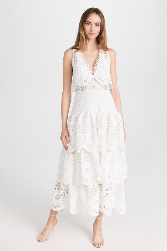 Ellery Boyundan Bağlamalı Dantelli Katmanlı Midi Elbise