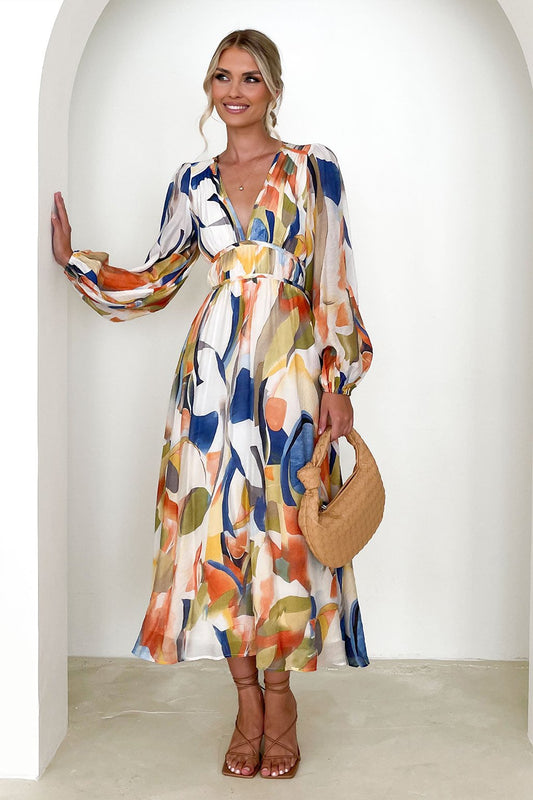 Mildred Baskılı Kayık Yaka Uzun Elbise