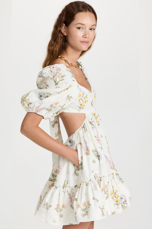 Hamo Baskılı Puf Kol Cut-Out Mini Elbise