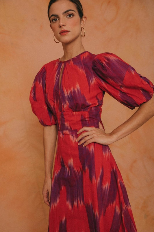 Evelyn Çiçek Baskılı Katlı Midi Elbise