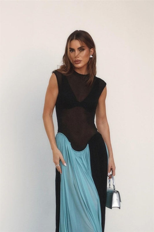 32% İndirimAstrid Yuvarlak Yaka Kolsuz Jarse Uzun Elbise