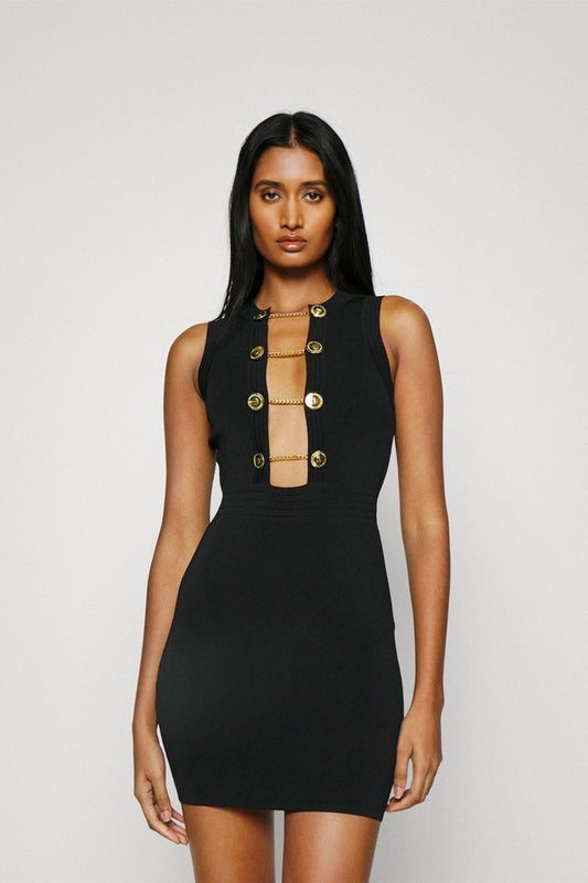 Patricia Kristal Taşlı Boyundan Bağlamalı Mini Triko Elbise