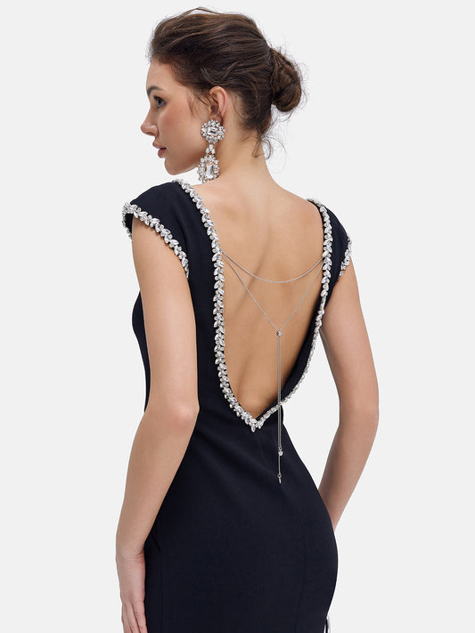 Marleigh Black Diamond İşlemeli Bandaj Midi Elbise