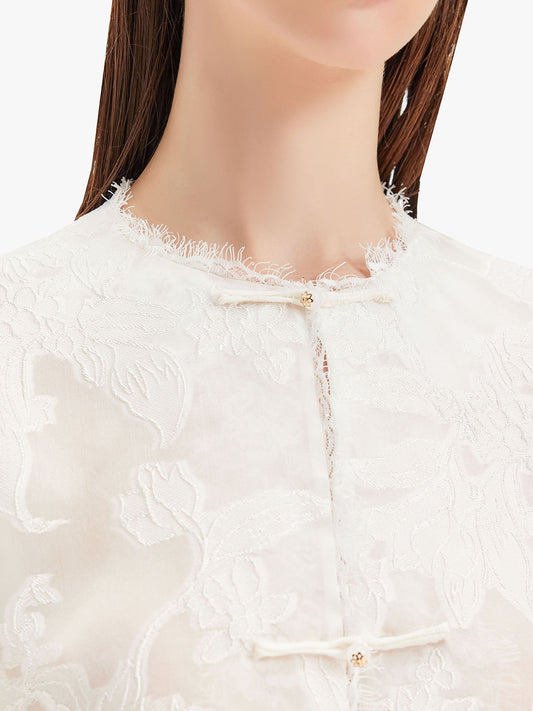 İp Dantel İşlemeli Premium İpek Bluz