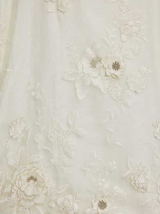 Anais Beyaz Dantelli Çiçek Omuzu Açık Midi Elbise